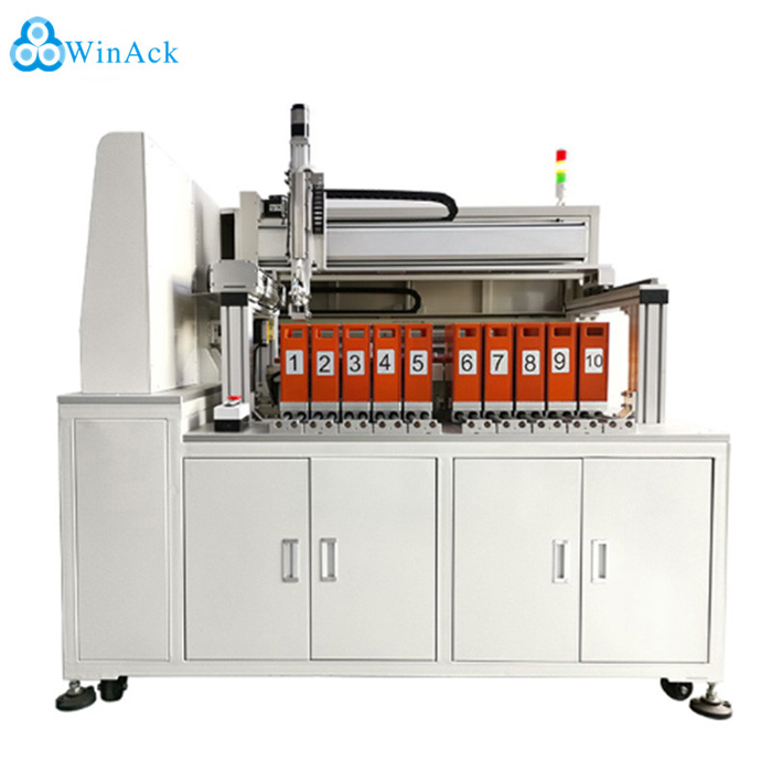 The 10-Channels automatic battery sorting machine with battery collection box is a machine consisting of a voltage internal resistance tester for testing the internal voltage resistance of a battery. Calculate the power of each battery according to the software settings of the host, and switch between different levels of batteries according to the judgment result. Automatically classify different channels of battery products.
